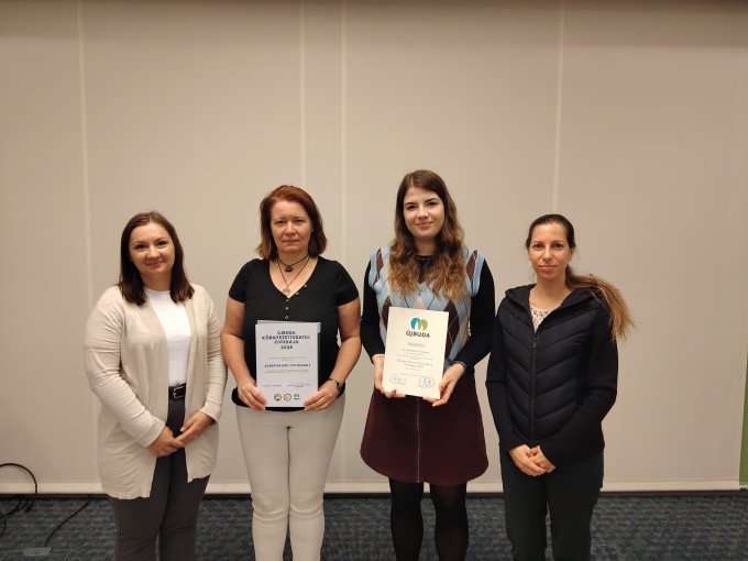 Sok-sok éve veszünk részt minden évben az önkormányzat által meghirdetett "Újbuda Környezettudatos Óvodája" cím elnyerésért induló pályázaton. 2025. szeptember 30-án volt a díjátadó az Újbuda Önkormányzatban, ahol mind a 8 önkormányzati fenntartású óvoda díjazásban részesült. A díjakat dr. Bács Márton, alpolgármester úr, Kreitler-Sas Máté, alpolgármester úr, Hégli Imre, a környezetvédelmi osztály osztályvezetője adta át.